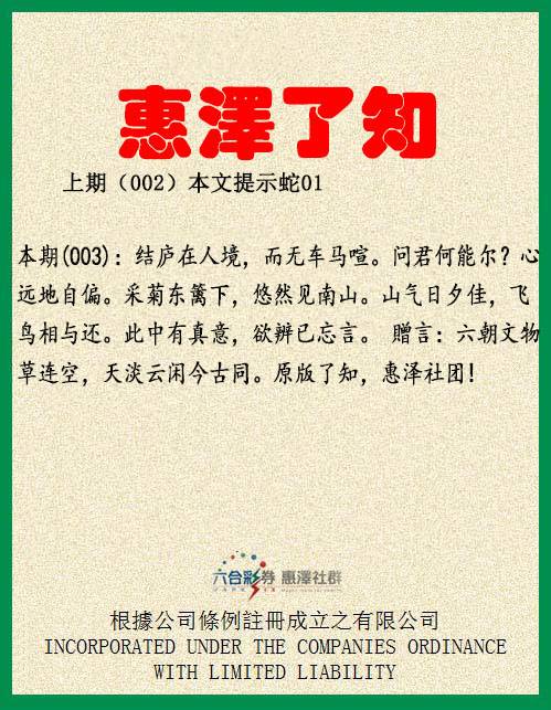 003期推荐五肖:羊蛇牛鸡马下5千.让你稳稳赚点小钱!